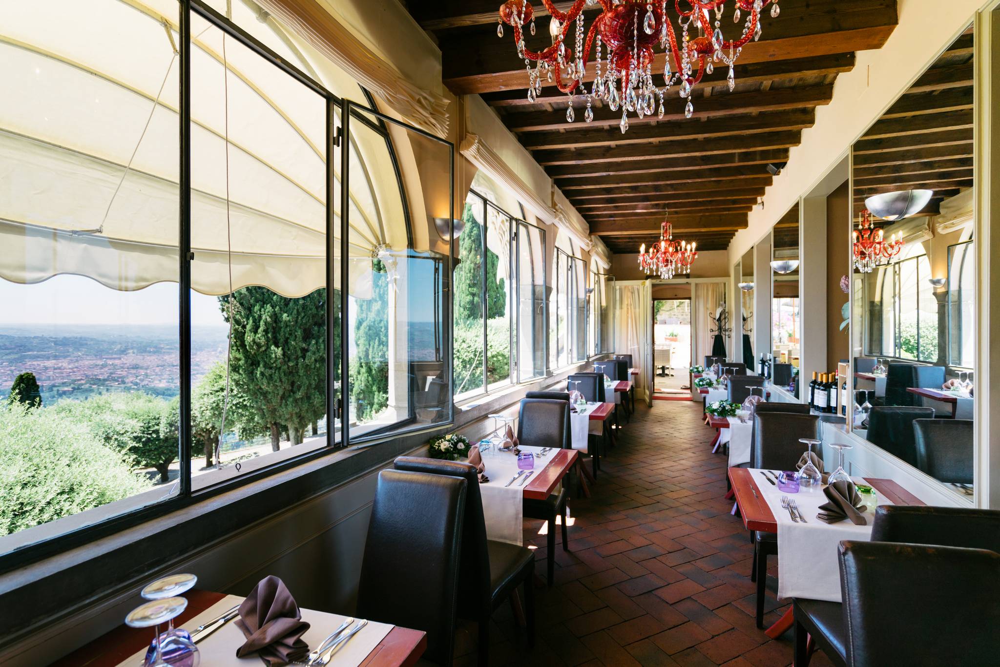 Located on one of the most panoramic terraces of Fiesole, La Reggia degli Etruschi (once a monastery and later a tearoom) is today one of the most exclusive restaurants in the city with a breath-taking view over Florence and its monuments.. It is a perfect, surprising synthesis of elegance and tradition in a unique ambiance immersed in the green of the Florentine hills...definitely not to be missed!