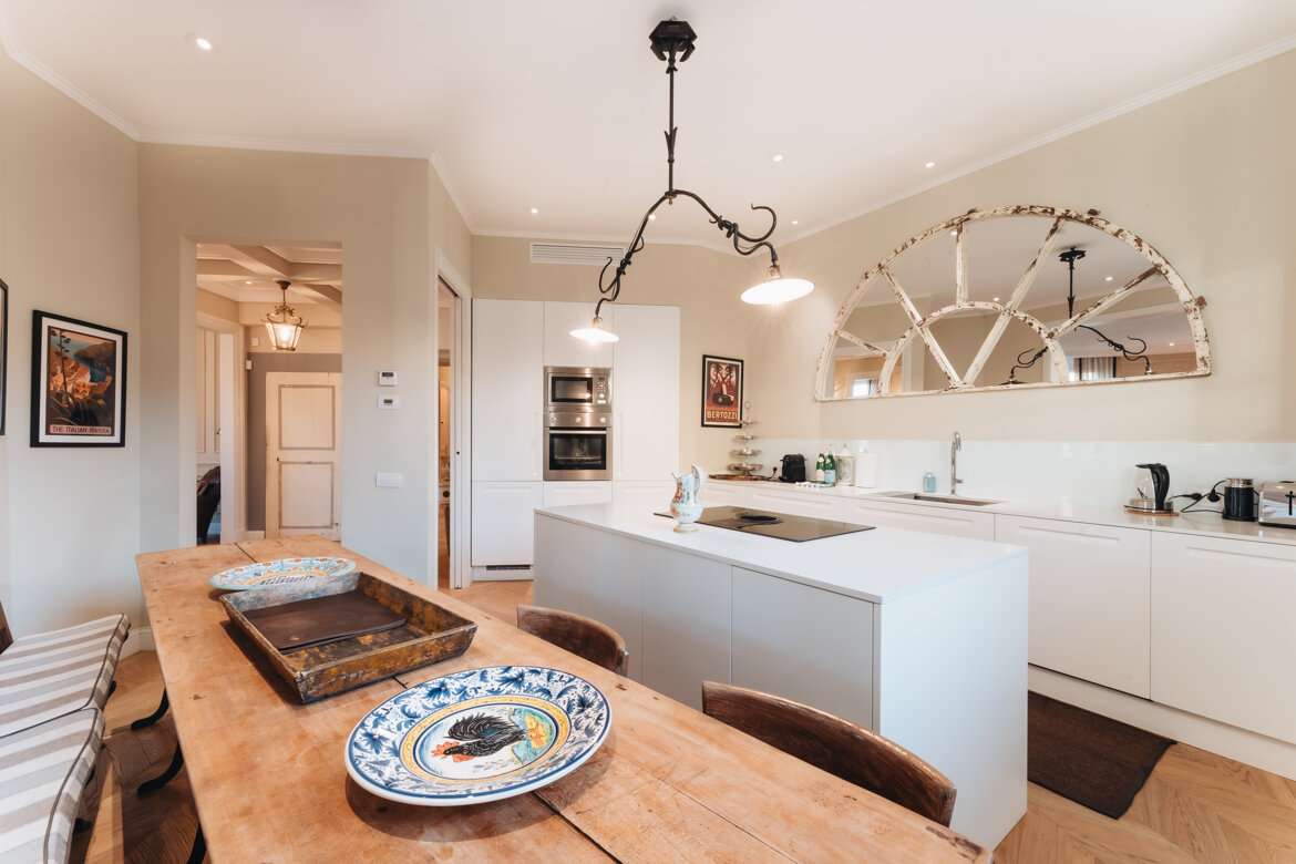 The Apartment is composed by a well-equipped kitchen, a prestigious study and a large living room with sofa and overlooking the Basilica of Santa Croce, to complete a splendid terrace overlooking the roofs of the city.