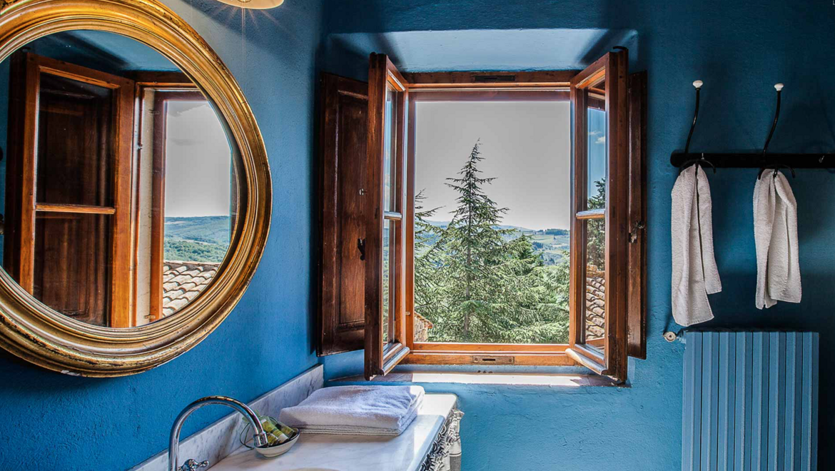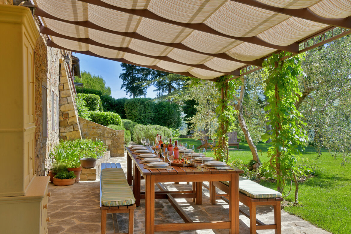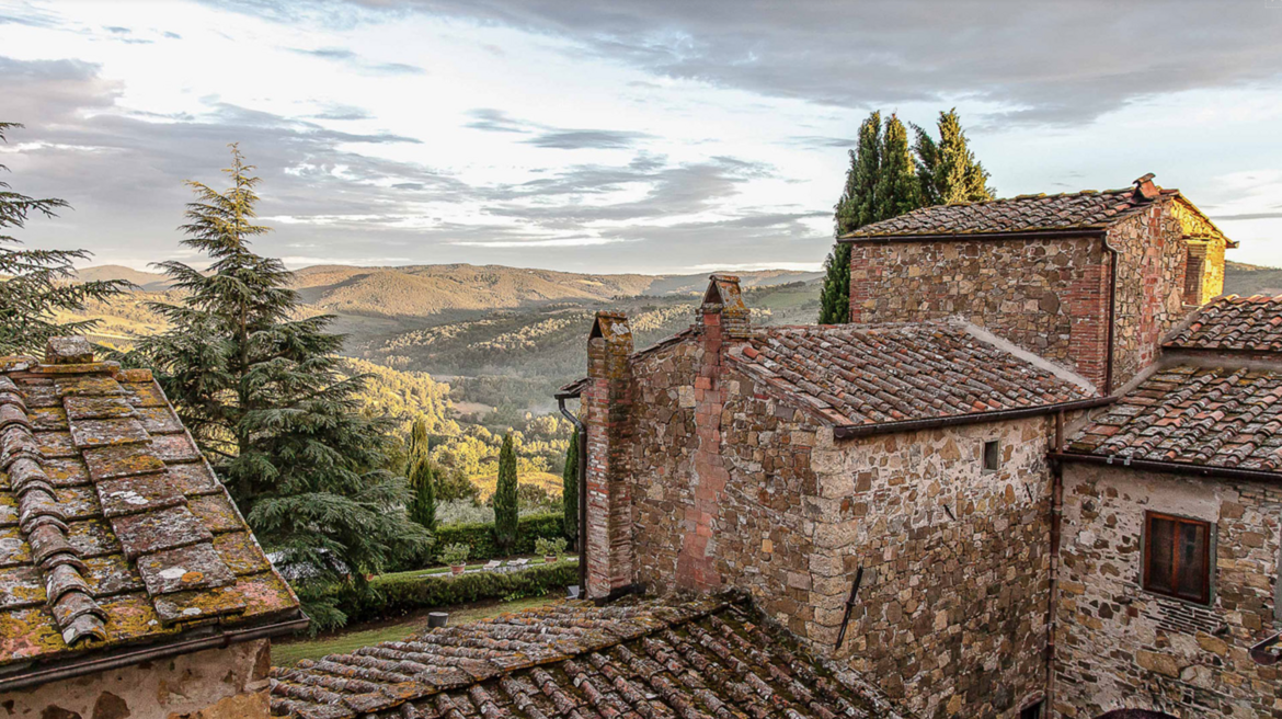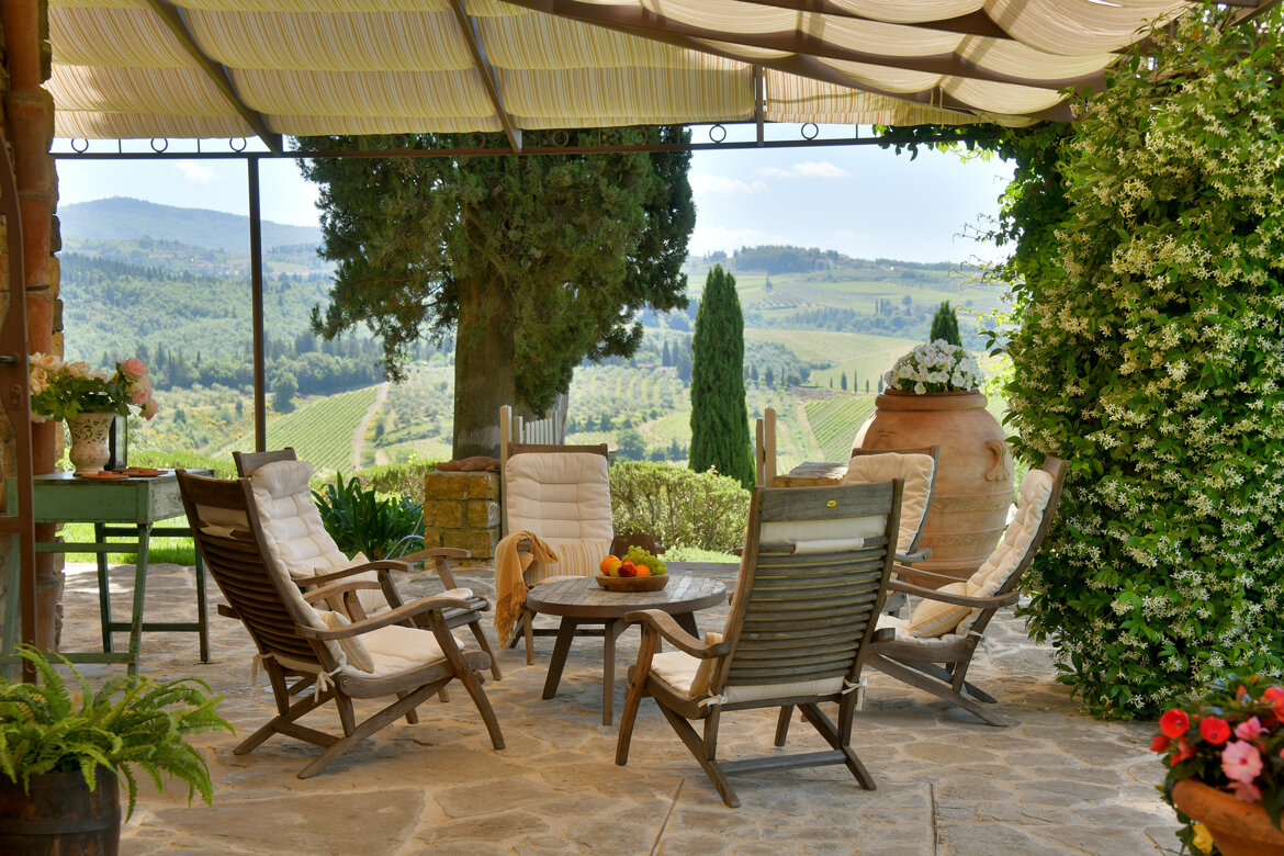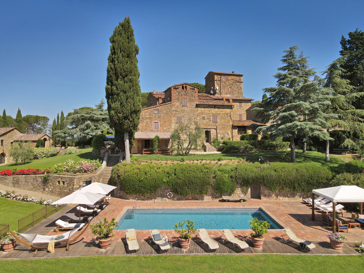 The villa is surrounded by spacious gardens with breathtaking views of the Val di Pesa.